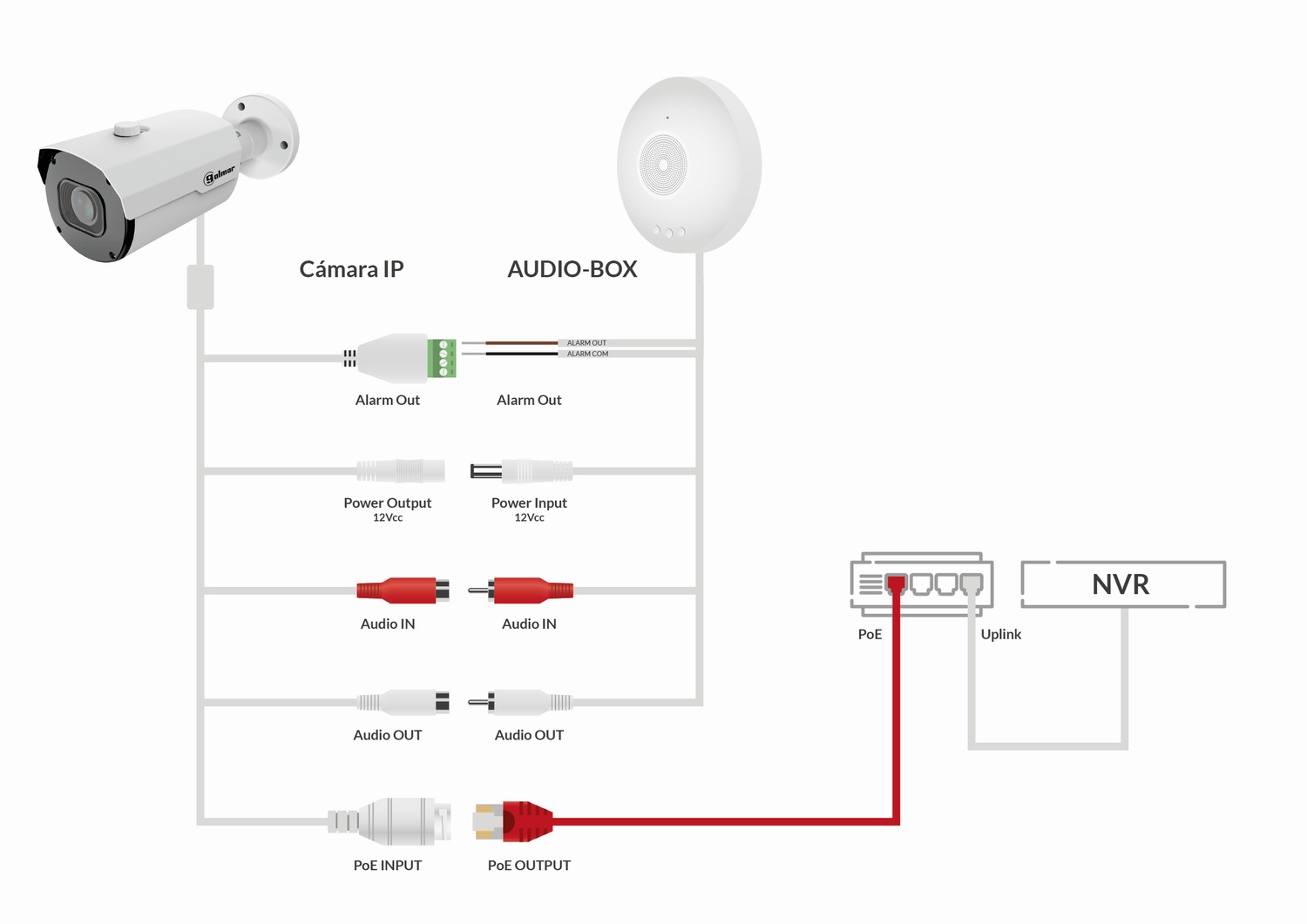 - Power supply via IP camera