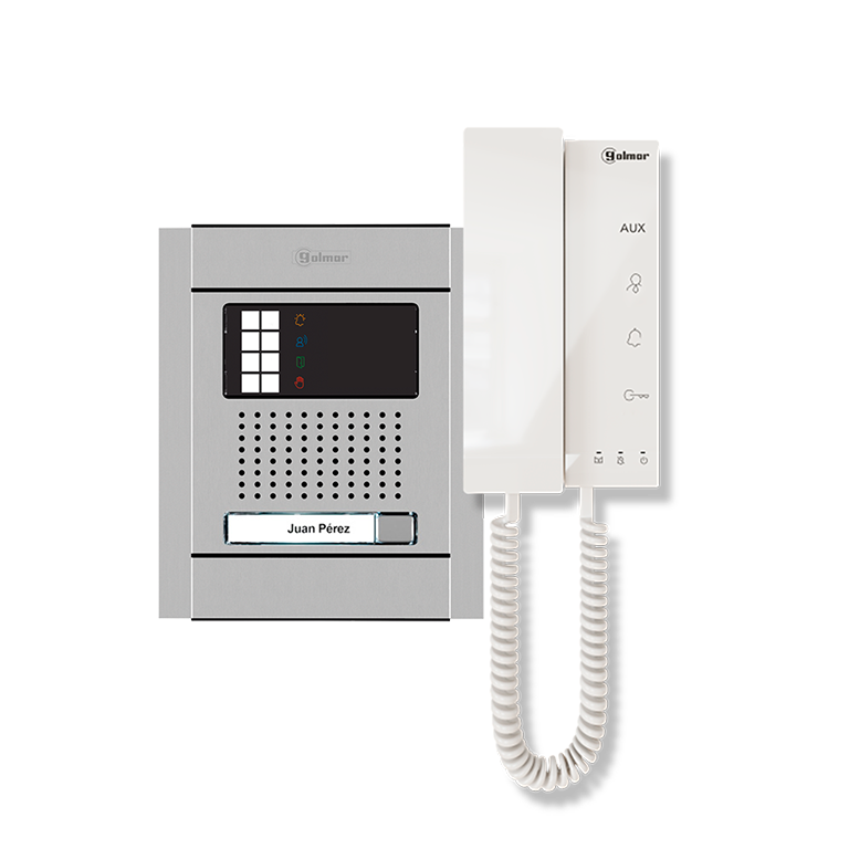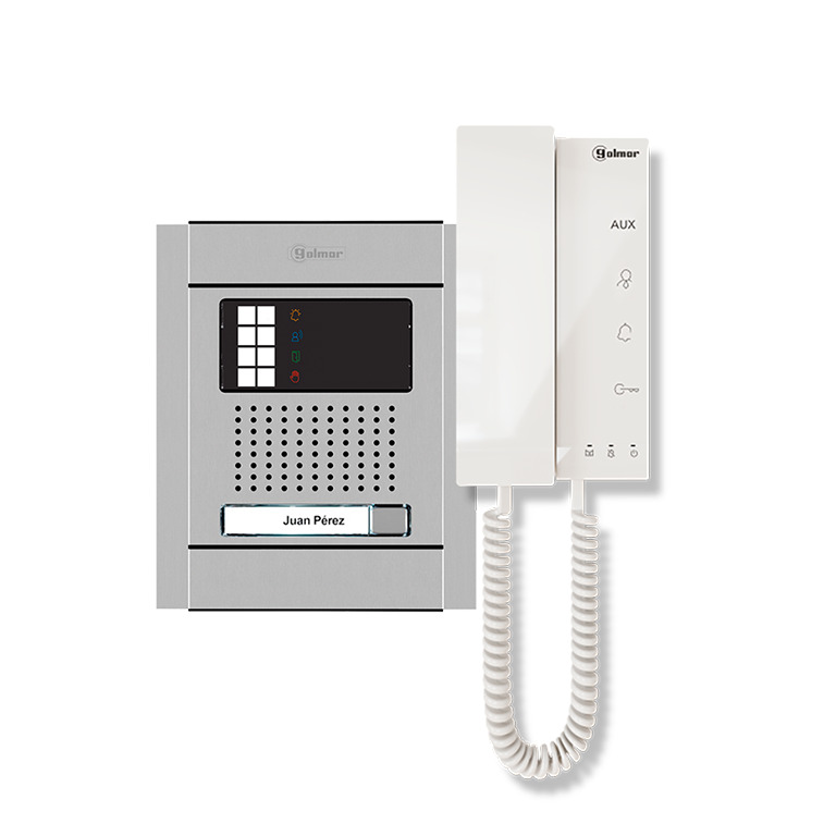 - Vocal messages and colour icons to indicate the different states of the system (call in progress, in communication, door opening or occupied system).