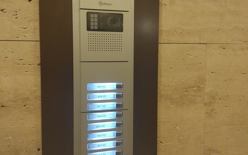 At the main gate a CETK-590 plus guard is able to communicate with any of the appartments to ask for permission to let in the visits.